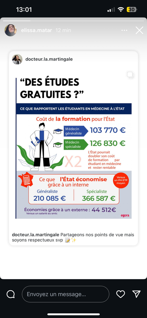 Vous êtes d'une arrogance rare en médecine, à vous lire tous ceux qui vous critiquent seraient des RSAistes jaloux, quand bien même un simple calcul niveau primaire démontre l'arnaque derrière l'idée d'un remboursement des 200,000 EUR par vos heures de travail non rémunérées. Prends le temps de lire au moins quelques messages après la première page, comme une forme de courtoisie pour ton contradicteur. Tu y aurais trouvé des choses intéressantes à lire, et aurais pu développer une argumentation un peu moins lapidaire, et surtout non construite sur des mensonges (par exemple le fait que vous passiez soi-disant 10 ans à travailler à l'hôpital durant vos études).