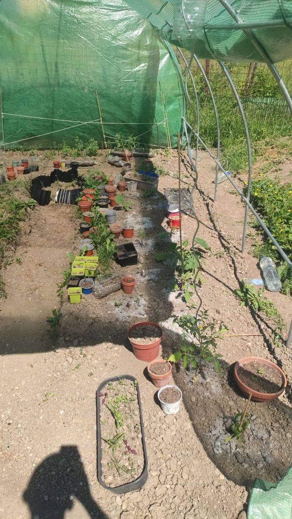 J'ai continué à planté en serre et dehors. Y a du poivron aubergine tomates concombre courge et melon dans la serre. La même chose dehors sauf aubergine et poivron.