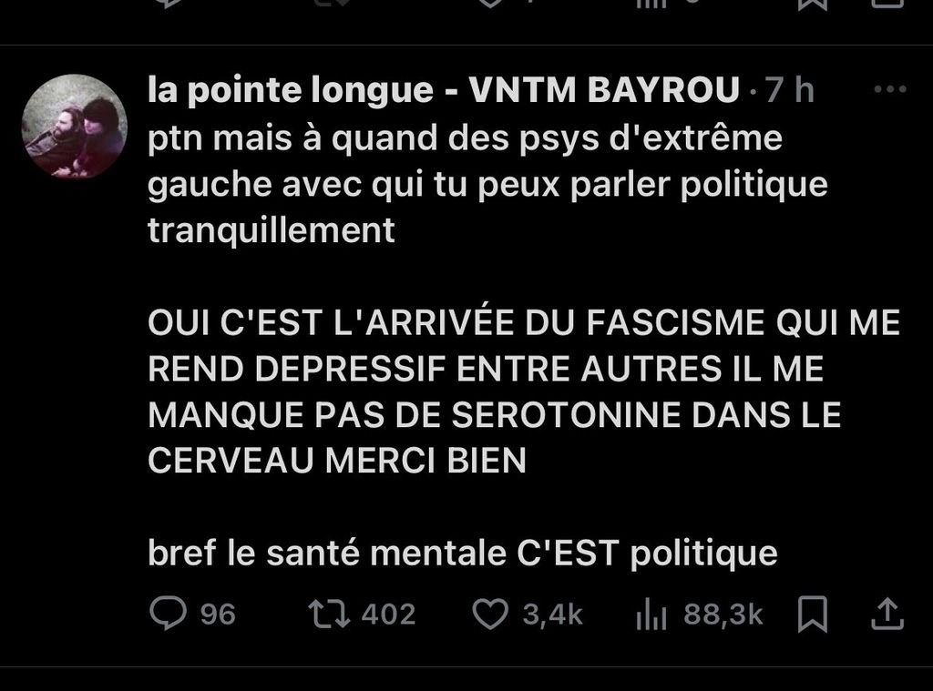 Ce gauchiste : c'est la montée du fascisme qui me rend dépressif