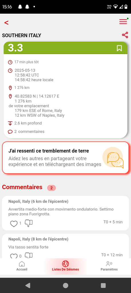 Suivi quelques secondes plus tard d'un séisme de 2,7 aussi