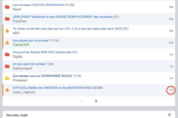 Je constate aussi, mais sur JVC quand je faisais des topic, soit je bidais soit 410. Et quand tu répondais vers la fin d'une page d'un topic, tu devais C/C ta réponse sur la nouvelle page pour attirer l'attention, ça jouait aussi.