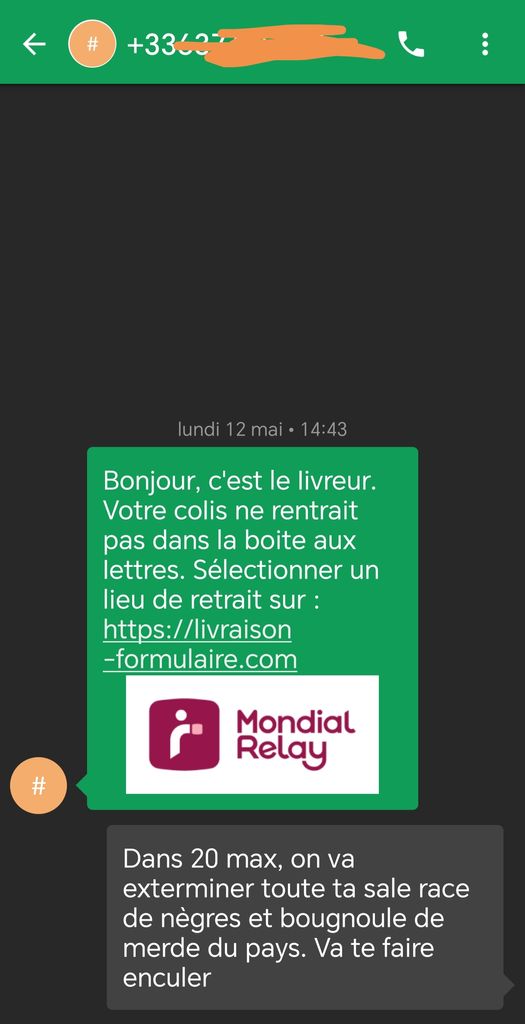 Ahi le pauvre type qui s'est fait pirater son numéro et qui va recevoir cela