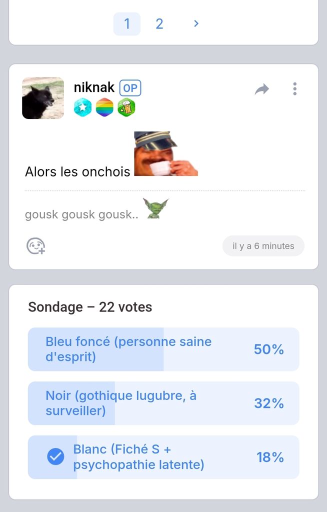 bon ceux qui mettent en noir je vous vois un peu comme des mages noirs marginaux mais au moins je pense pas que vous soyez des psychopathes, à la limite des edgelord dont le destin est sombre