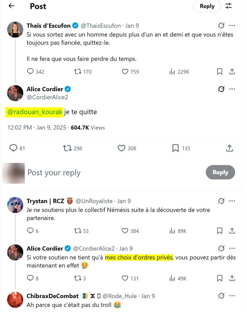Et dans le fond on s'en branle, parce que si la politique est un brise-couple pour les 2 partenaires, ça ne dure finalement pas longtemps