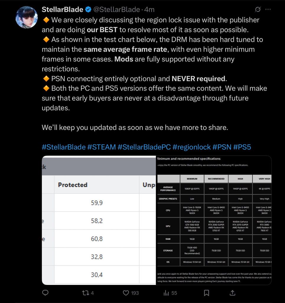 Ils ne supprimeront pas le DRM Denuvo mais on apprend que vous allez pouvoir modder Stellar Blade