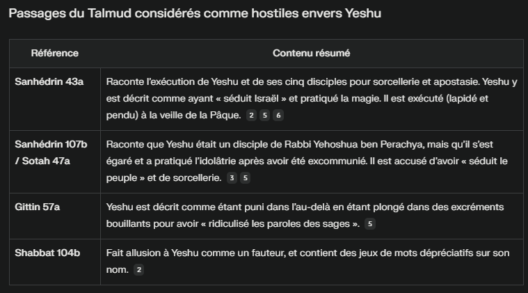 4 siècles plus tard dans le Talmud, les juifs résument les raisons de leur haine envers "Yeshu" :