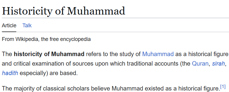 Sa vie est peut-être inconnue mais il y'a un consensus historique et de nombreuses sources contemporaines et non-islamiques montrant que Mohammed a existé en tant que leader et prophète en Arabie au début du 7ème siècle