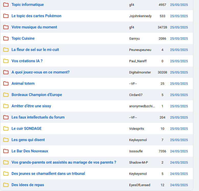Il y a 10 ans c'était rempli. Avec en plus les sous forums (notamment le sous forum religion qui était très actif).