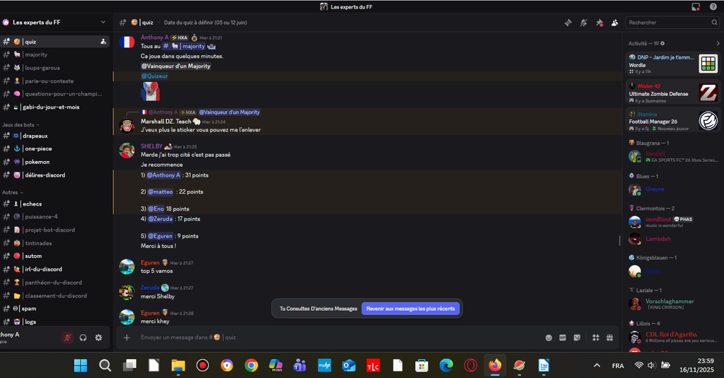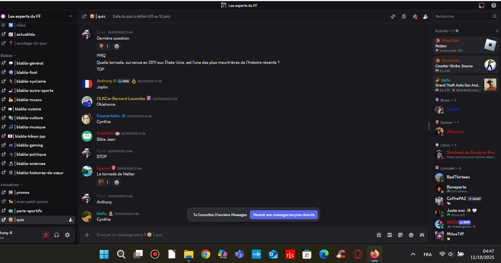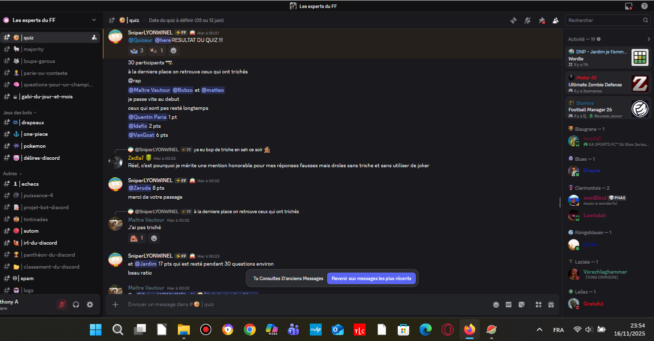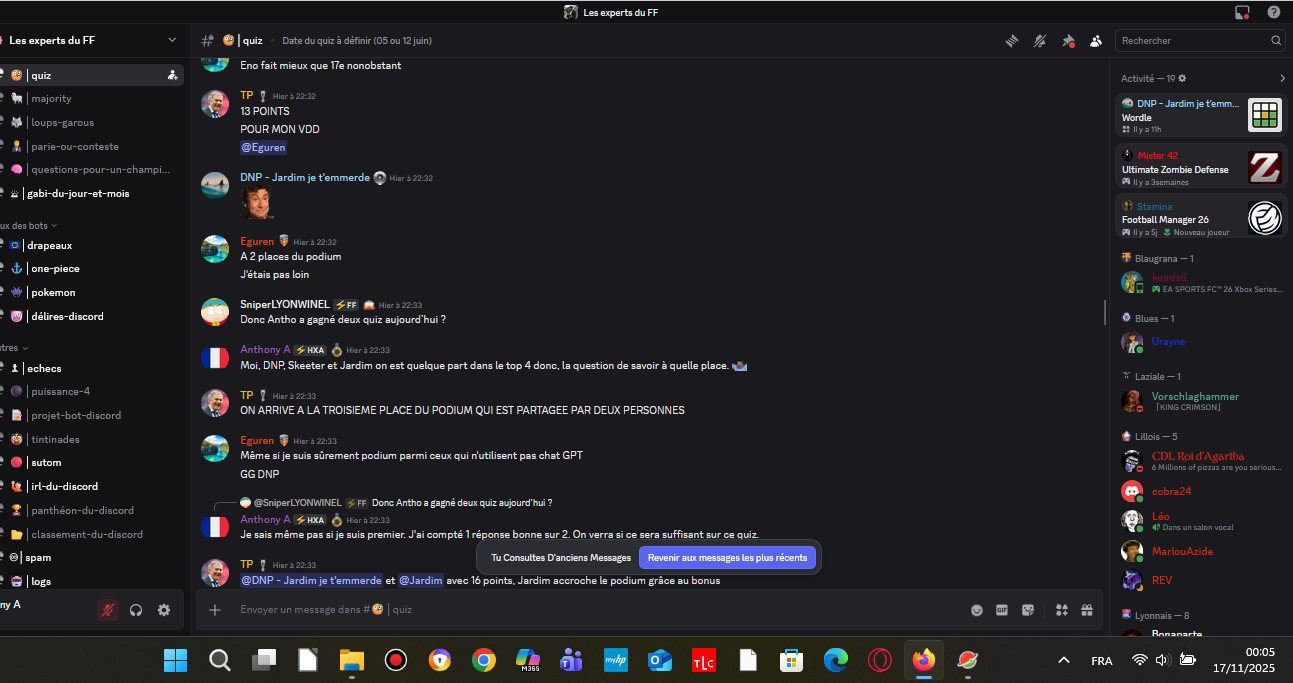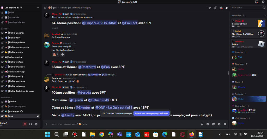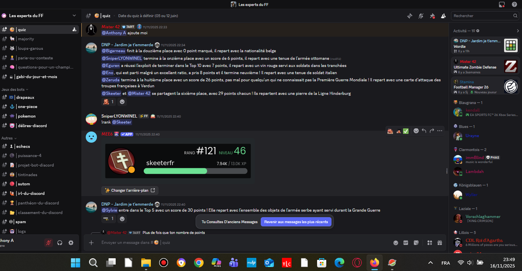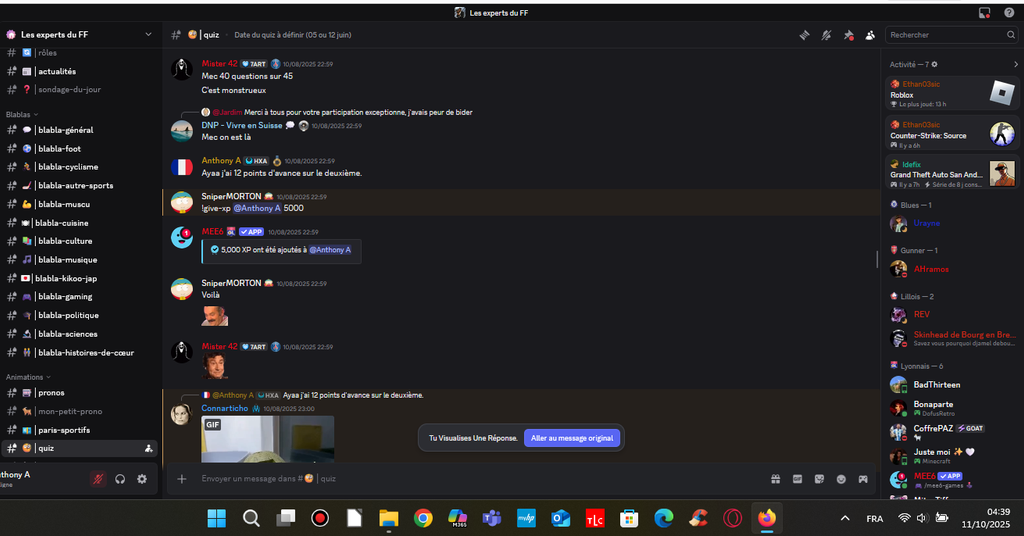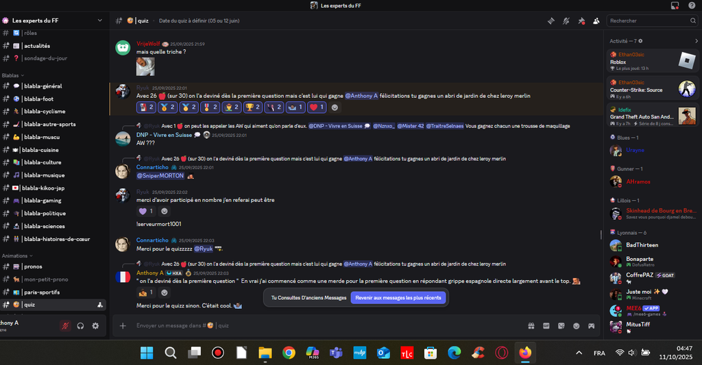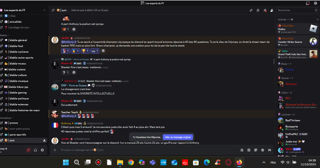 Je remporte le quizz Culture Générale le 9 août 2025.