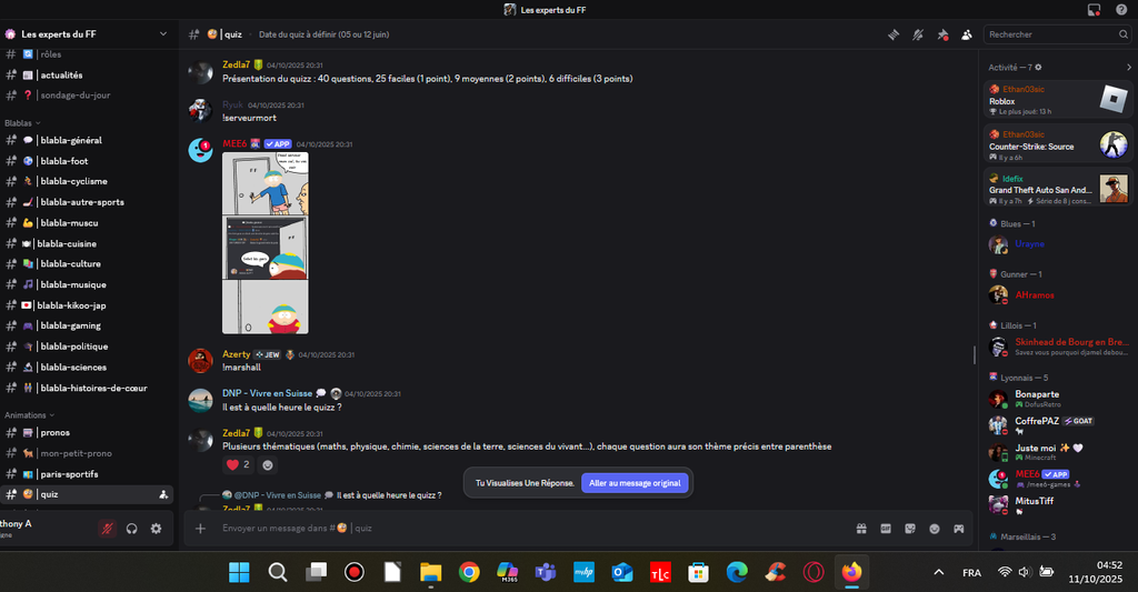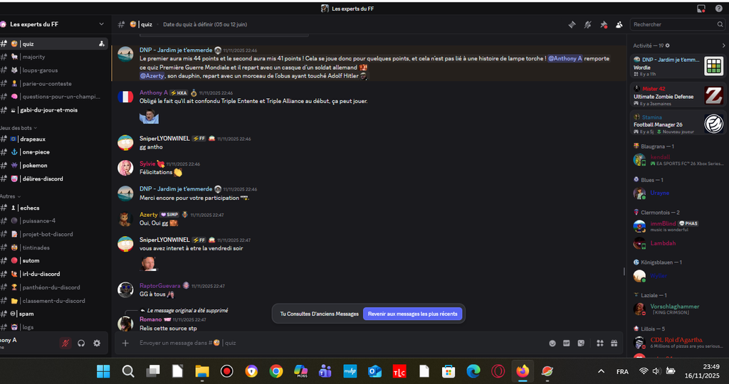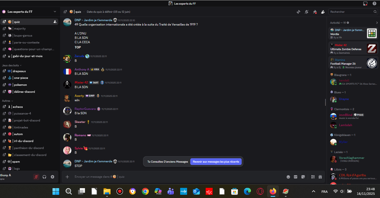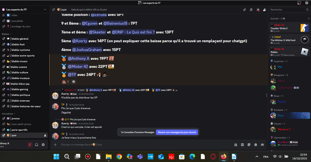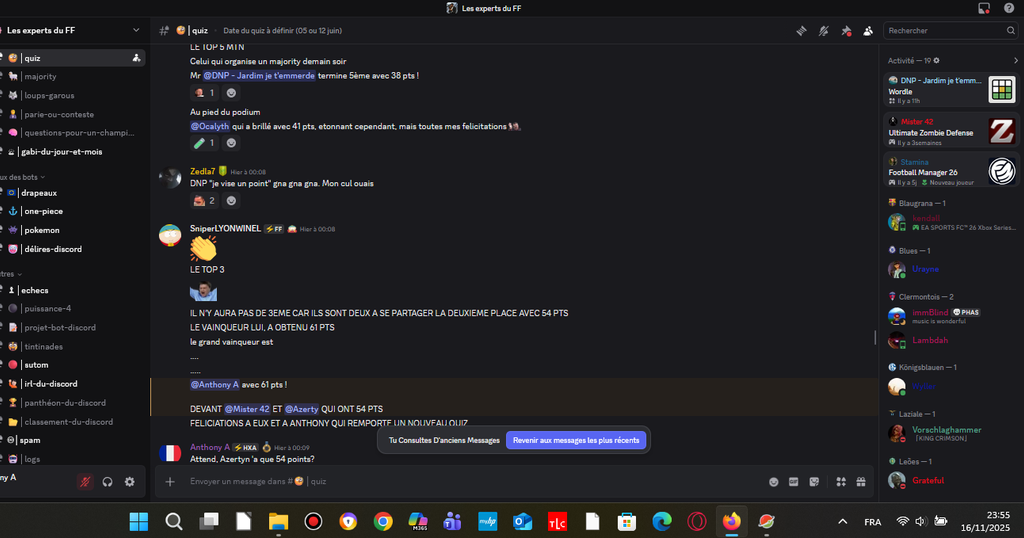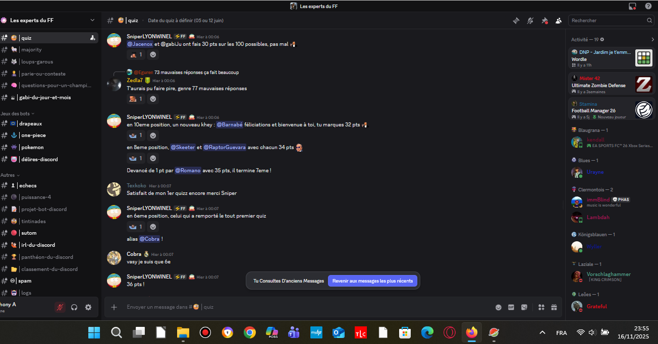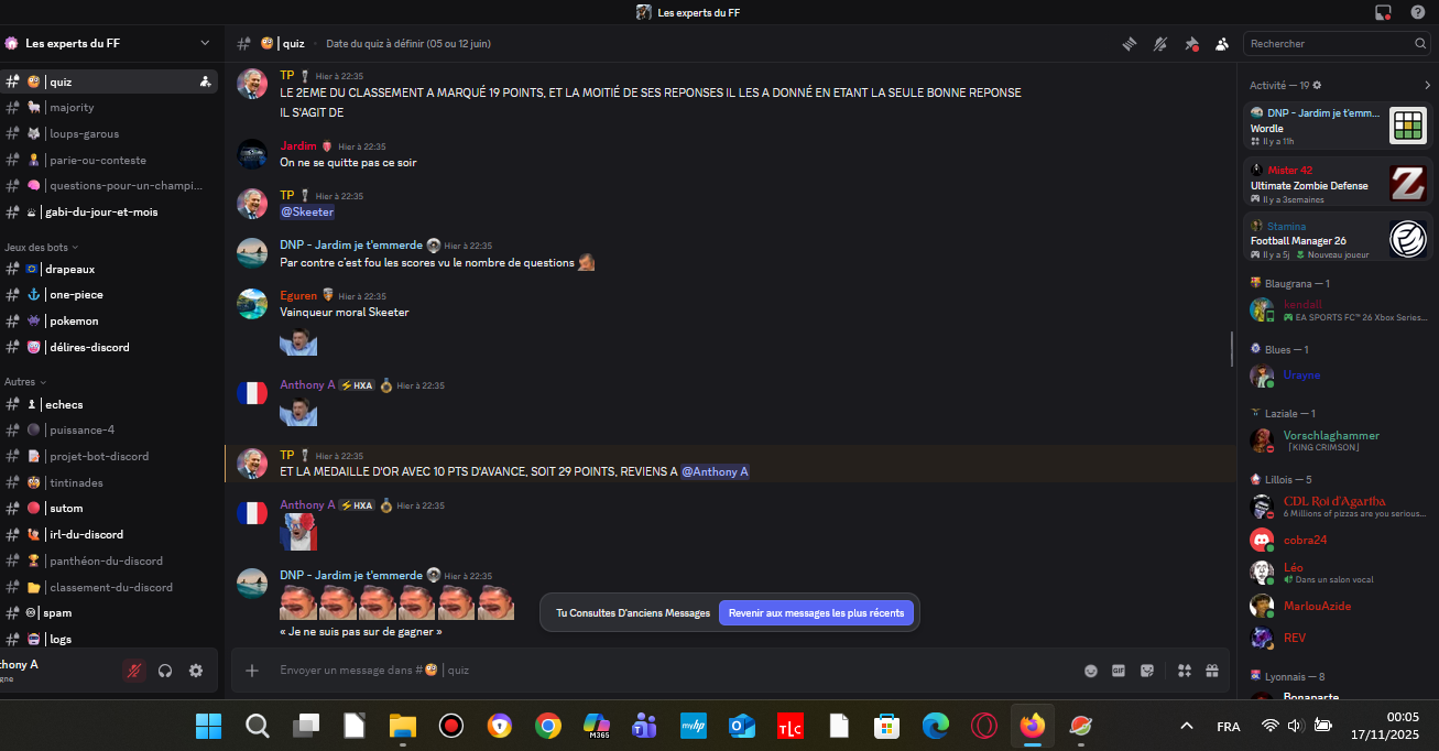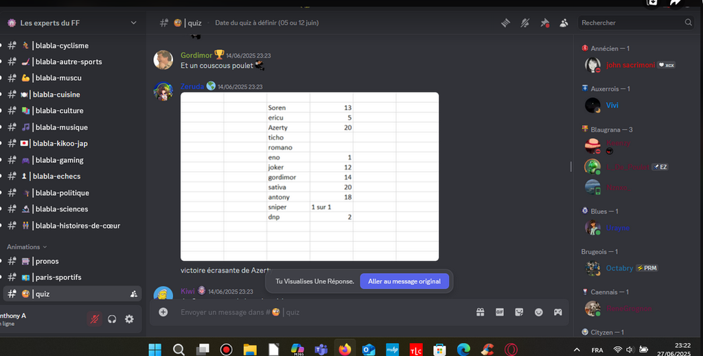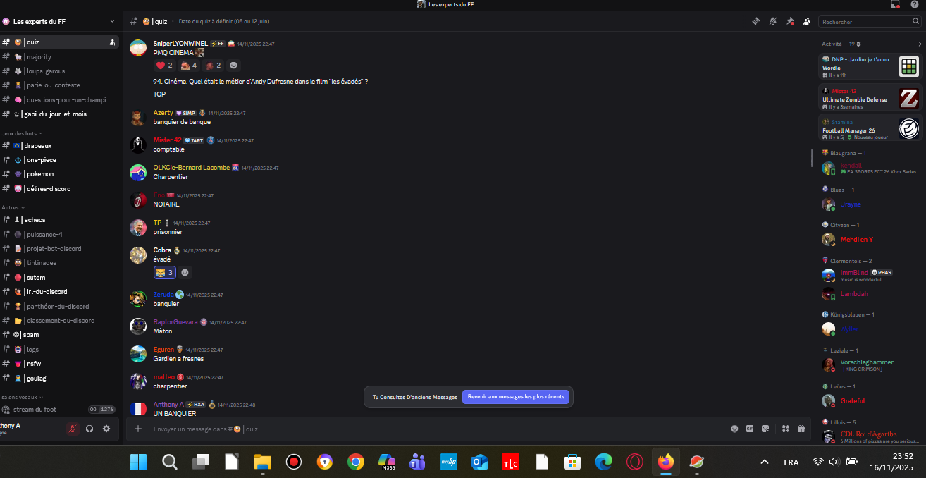 Je remporte le quizz Culture Générale le 9 août 2025.