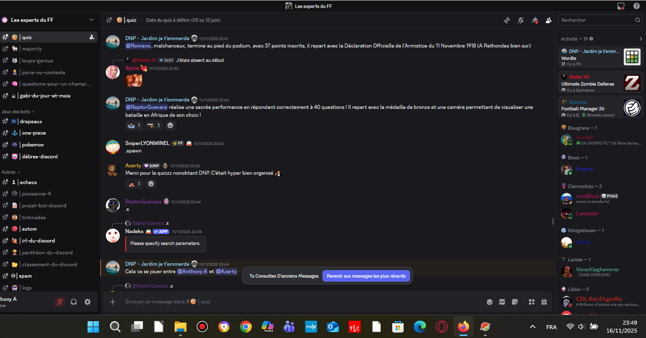 100. Anthony (12) (Quiz spécial avec les 99 thèmes des 99ème qui précédents + 100ème question spéciale)