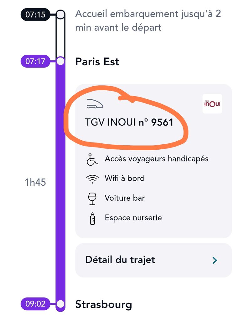 Prenons un exemple concret : un Paris - Strasbourg le 12 juin. Départ de Paris à 7h17 :