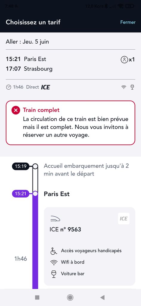 Prenons un exemple concret : un Paris - Strasbourg le 12 juin. Départ de Paris à 7h17 :