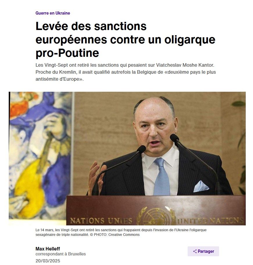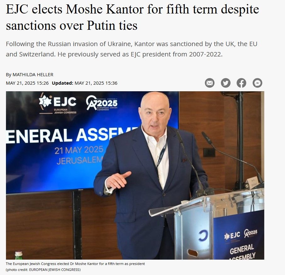 Le juif Moshe Kantor, milliardaire russe au passeport russo-israélien-britannique (comme tout bon juif) ayant des liens avec le Président russe Vladimir Poutine.