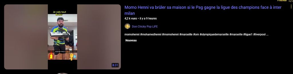 Momo Henni va brûler sa maison si le Psg gagne la ligue des champions face à inter milan