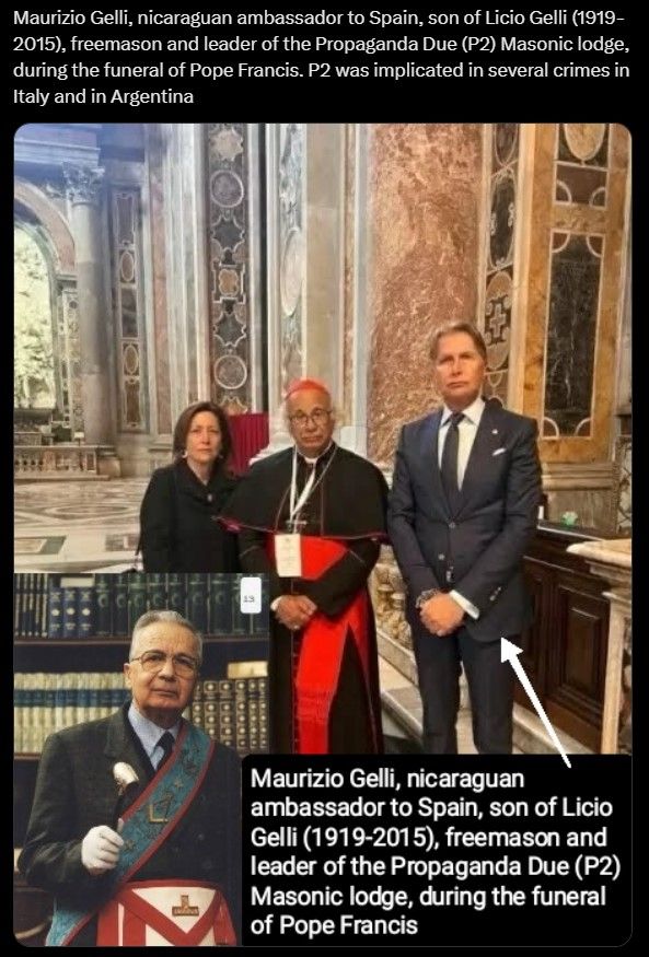-> Maurizio Gelli, fils de Licio Gelli, fondateur de la loge maçonnique P2, présent aux funérailles du Pape François :