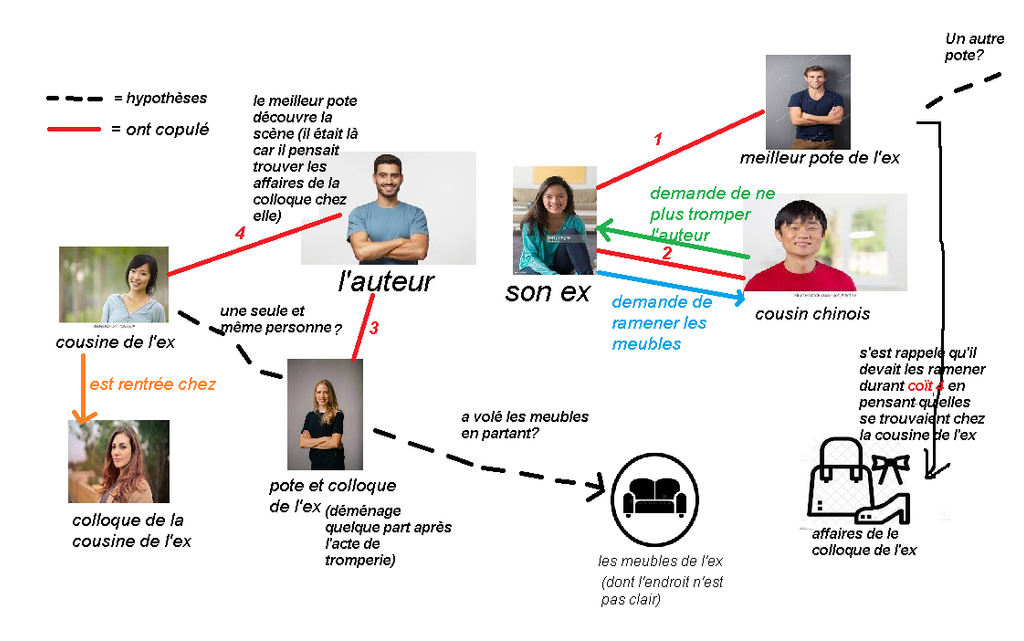 Par contre j'ai pas compris pourquoi la colloc a récupéré sa cousine et pourquoi tu as baisé le meuble chinois