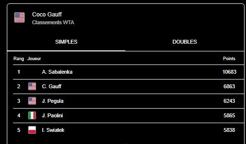 En double, elle est forte aussi, mais en simple, là, les points globaux, il y a eu un sacré écart entre numéro un et deux, mais le niveau actuel, on peut se dire qu'elle a ses chances.