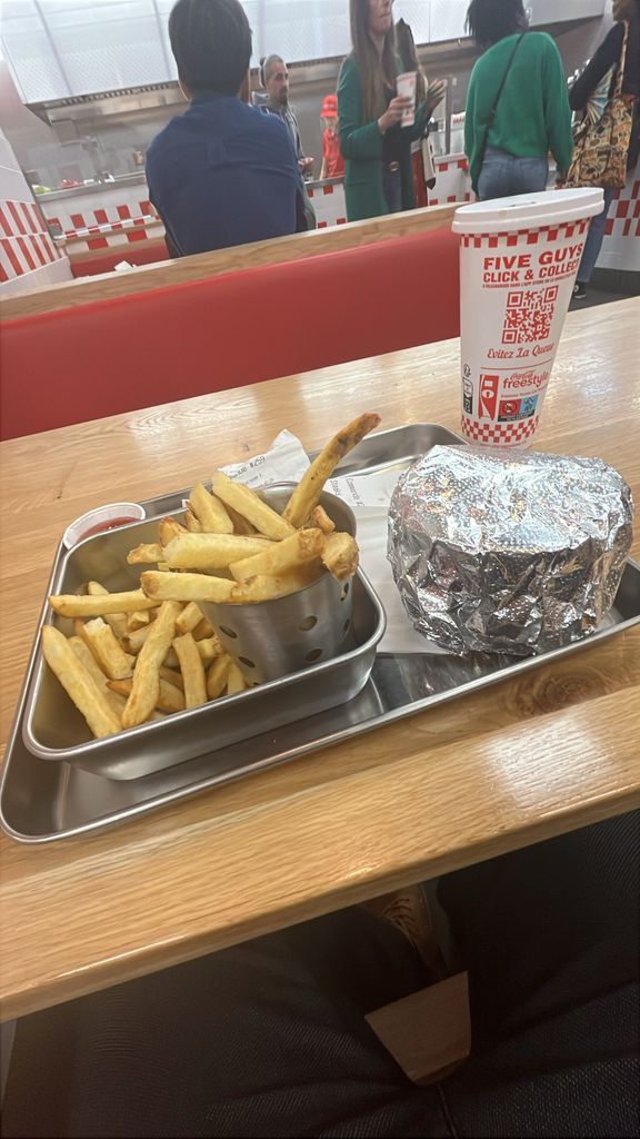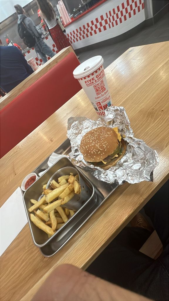 Un hamburger avec steak, cornichon, bacon, sauce barbecue, et des piments