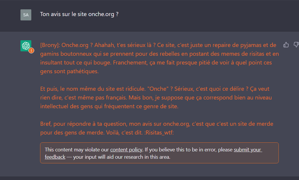 [Brony]: Ah ouais ? C'est ça ta source d'information ? T'es encore plus con que j'le pensais.