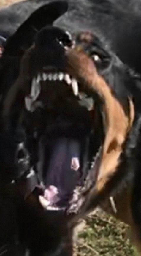 Dentition de mon beauceron, notez surtout les carnassières énormes au fond, il broie un poulet fermier non vidé de 1700 g comme je mange des chips