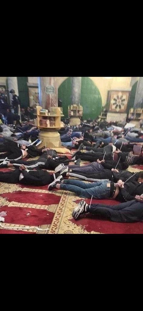 Les terroristes israélien ont parqué les fidèles musulmans dans leur lieux saints comme du bétail enchaîné :