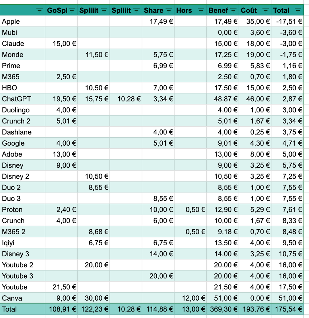 Tu passe par un system ou tu partage les abonnements comme Netflix ou autres avec spliiit ?