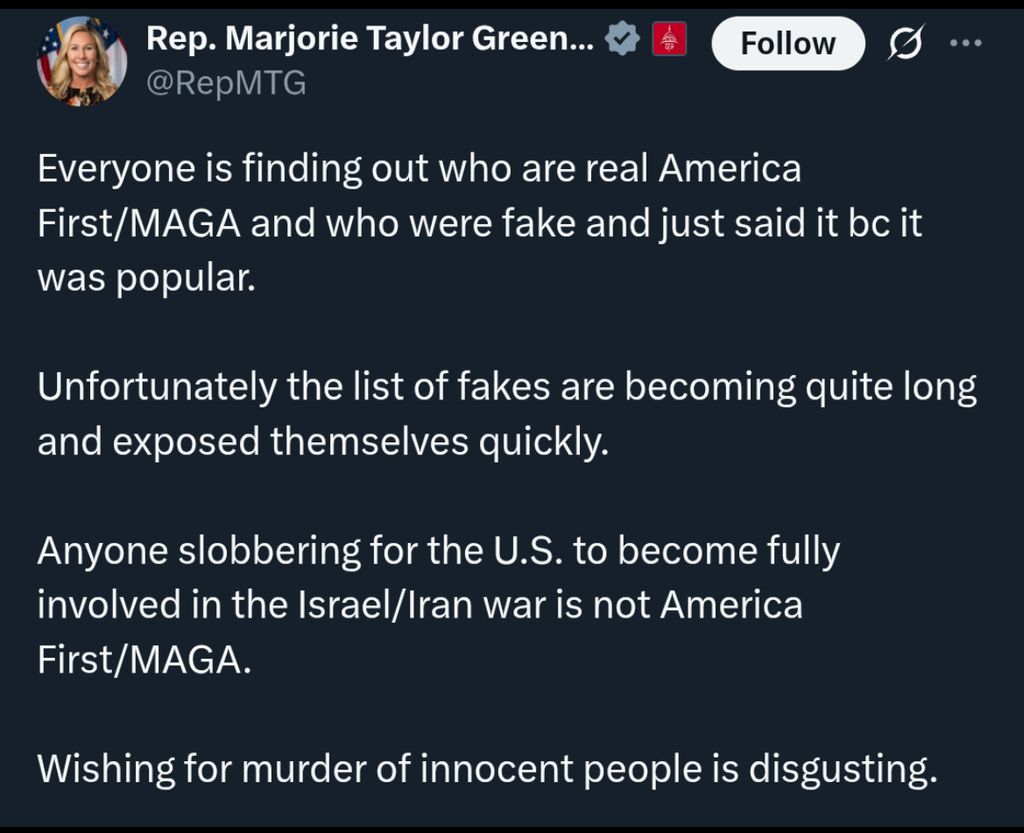 Et je rajouterai que toute la sphere republicaine-patriote americaine est tres tres remontée contre Trump et va frainer des 4 fers pour empecher que les USA entrent en guerre.