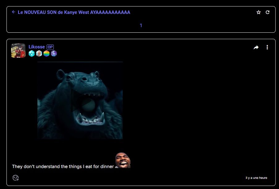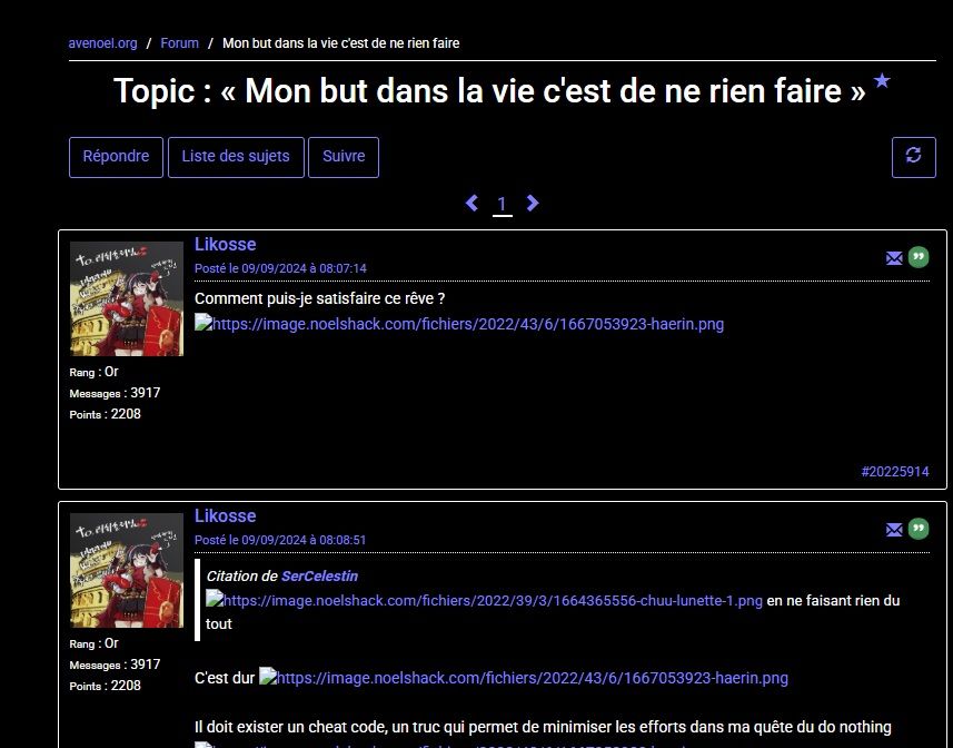 C'est vrai que poster normalement, c'est clairement une définition si on prend cet angle, waouh, sachant que quasiment tous ici font généralement des boucles, d'ailleurs, c'est aussi la marque des plus populaires, bizarre, non. Et le pire, c'est que l'activité y est, c'est dommage, on devrait tellement prendre exemple sur avn, pour mieux couler.