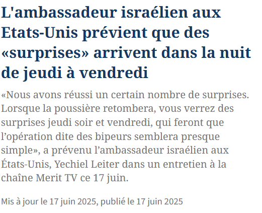 Israël: "Des SURPRISES vous attendent dans la nuit de jeudi à vendredi, stay tuned !"