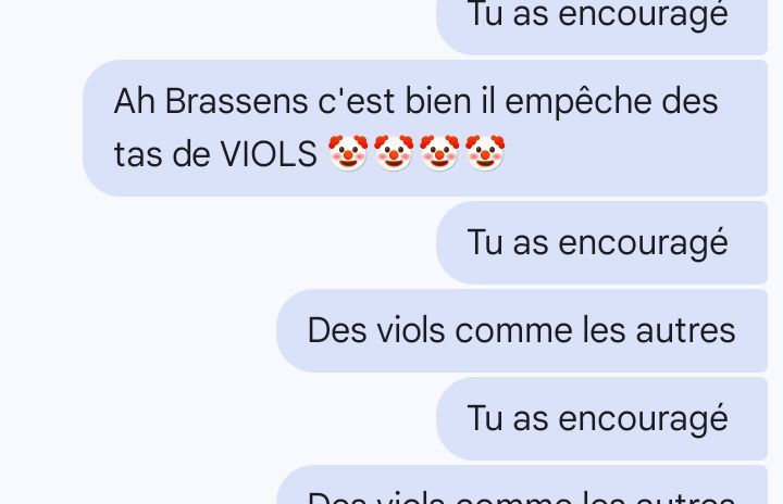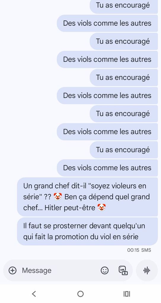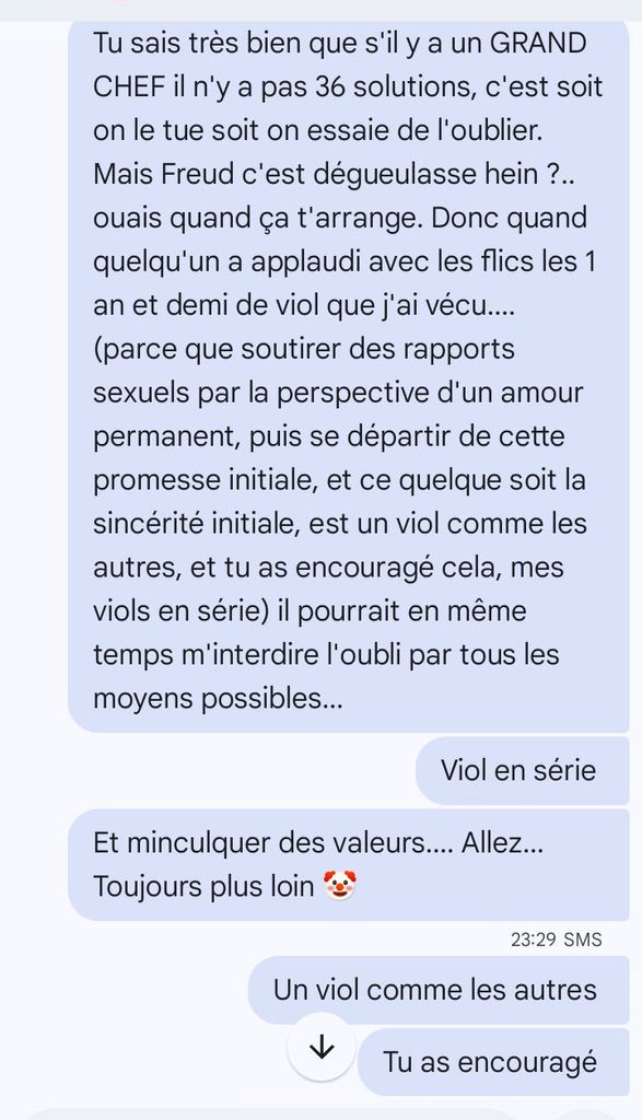 Je vous ai évidemment épargné les 68859392929 lignes de "tu as encouragé Des viols comme les autres"