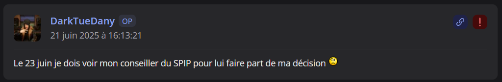 Le 23 juin je dois voir mon conseiller du SPIP pour lui faire part de ma décision