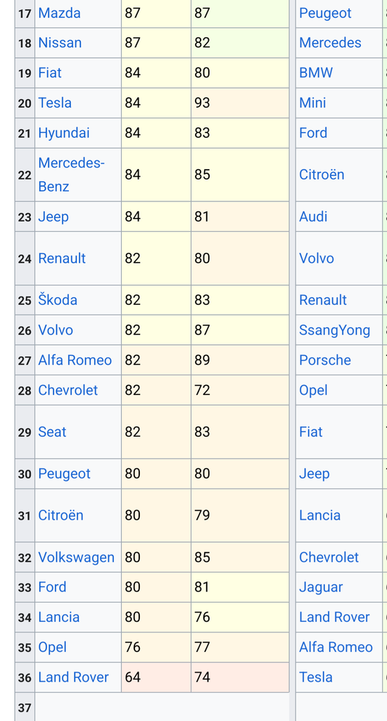 Voilà des test de fiabilité effectué sur pleins de véhicule et notamment Ford et Jeep, deux marques américaines qui se vendent correctement en europe. Tu peux voir qu'elles sont en bas du classement