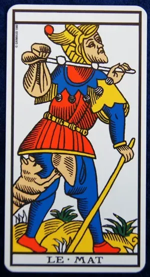 La composition me rappelle beaucoup la carte du "Mat" du Tarot de Marseille !