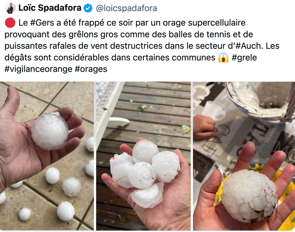 On se serait cru dans une caricature d'orage sur une île tropicale. Des éclairs NON-STOP (apparemment la foudre a frappé 350 fois en moins d'une heure), des grelons énormes, des vents à 110km/h, et le pire c'est que c'est arrivé d'un coup sans prévenir.