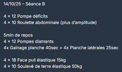 Top, tu note ton nombre de séries tes reps et tout ?
