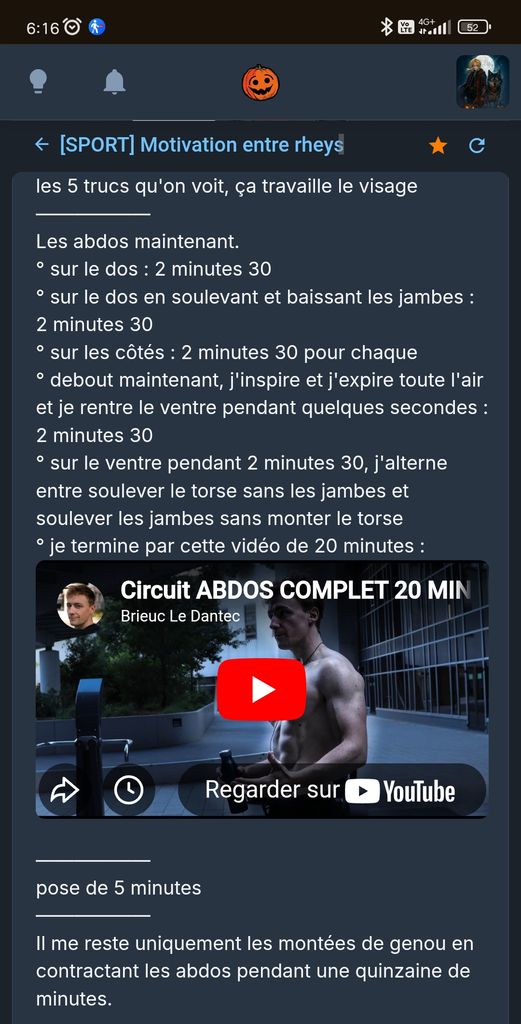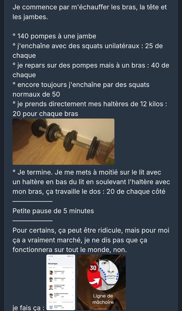 Bonne séance, pas trop difficile mais intense quand même, j'ai ajouté 2 exos accessoires pour épaules / trapèzes, et j'ai mis un peu plus de volume sur mes exos jambes
