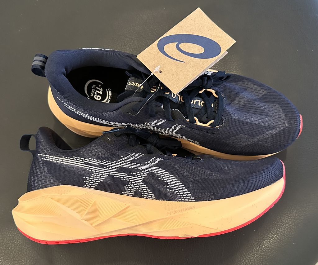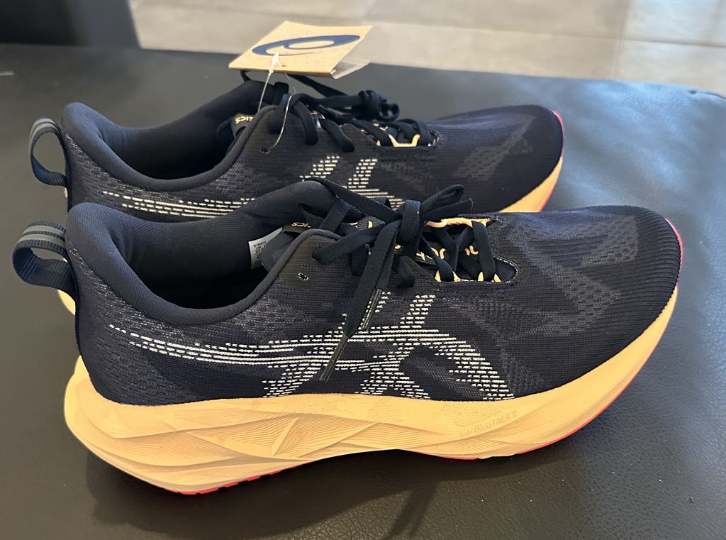 C'est des Asics Novablast 5 couleur Midnight/Orange Glow