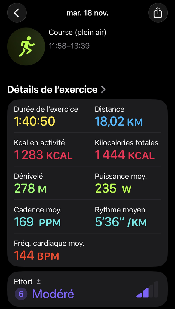 Mais niveau jambes, ça déroulait nickel, à la base je visais 5'30"/km, je suis en 5'36"/km, c'est pas ça le plus important et y'avait quand même presque 300m de D+ au total