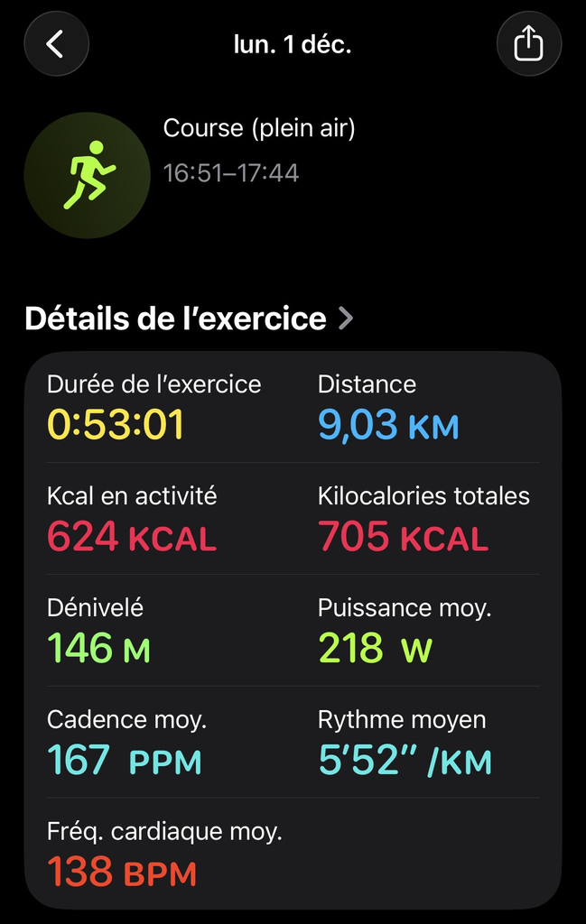 Enfin, c'est un petit footing de décrassage mais ça fait quand même 9km