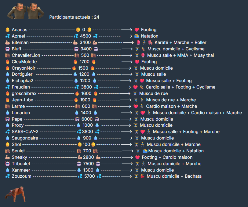wow, enfin pour moi ça me paraît dur, actuellement je début mes entraînements renforcement par (1 minute montée de genoux,1 minute nage en superman ) x 5 , donc une dizaine de minutes, et je suis à limite car c'est le but de cette échauffement