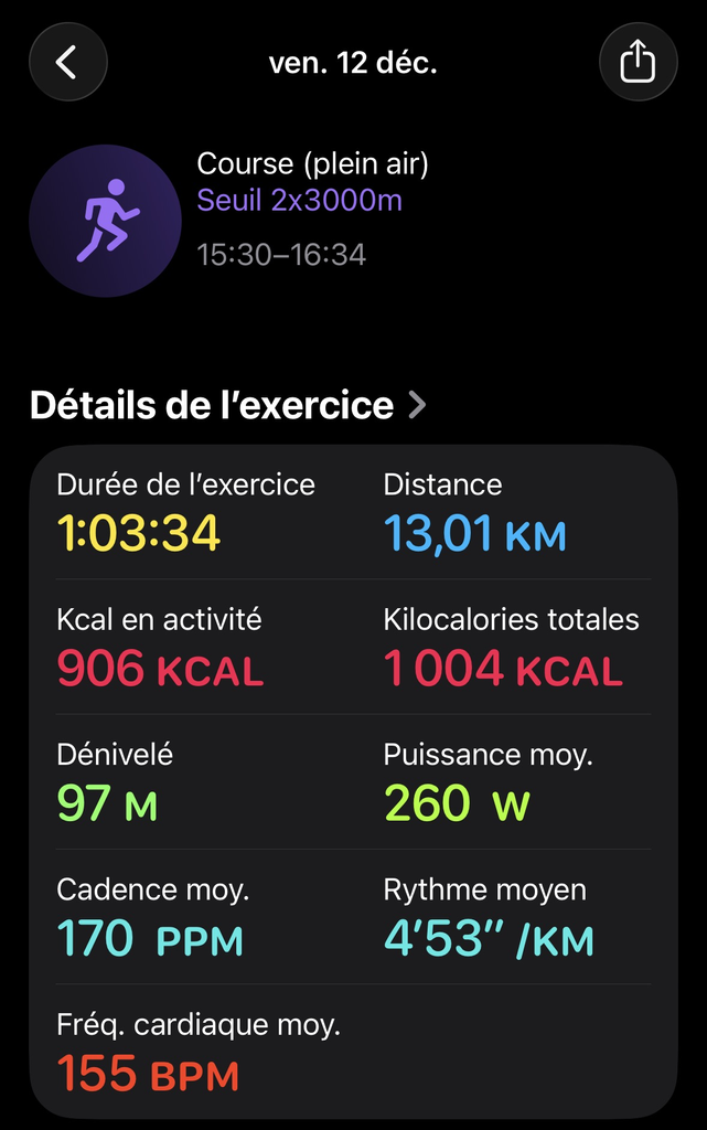 12/12/25 – Séance B + Marche 5 kilo