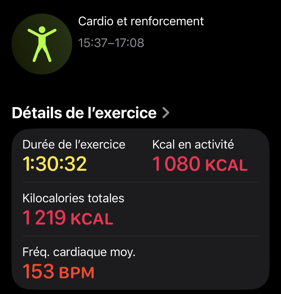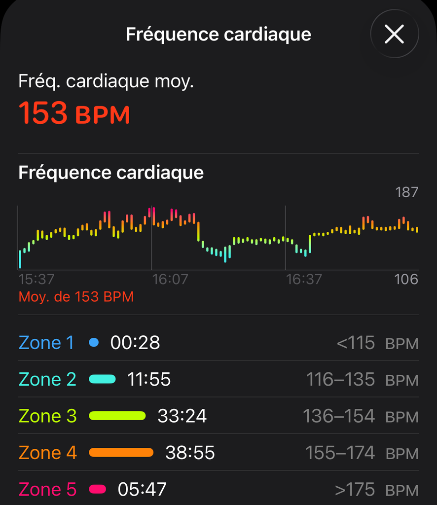 J'ai eu des merdes pour synchro mon capteur polar donc je poste juste les données Apple Watch