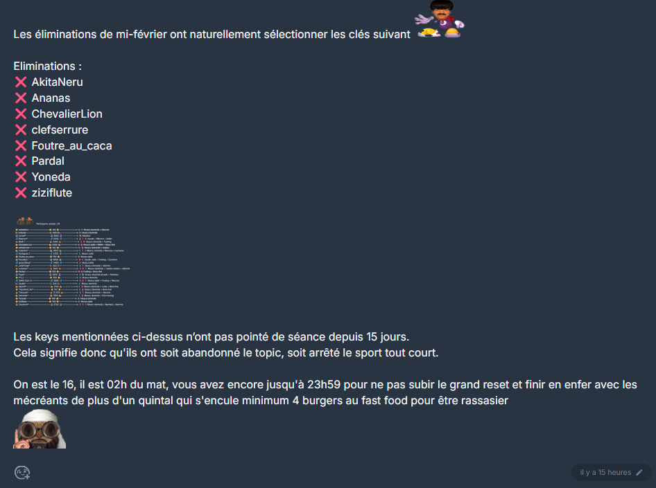 Tu n’as pas compris le but du topic, ce n’est pas de jouer à qui a la plus grosse, l'objectif et d'être le plus régulier possible selon le niveau de chacun
