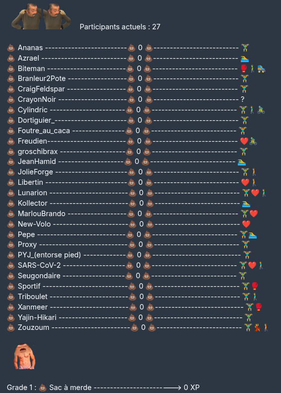 @zouzoum tu peut inscrire ici ta séance du jour, mais elle comptera pas, ca commence demain