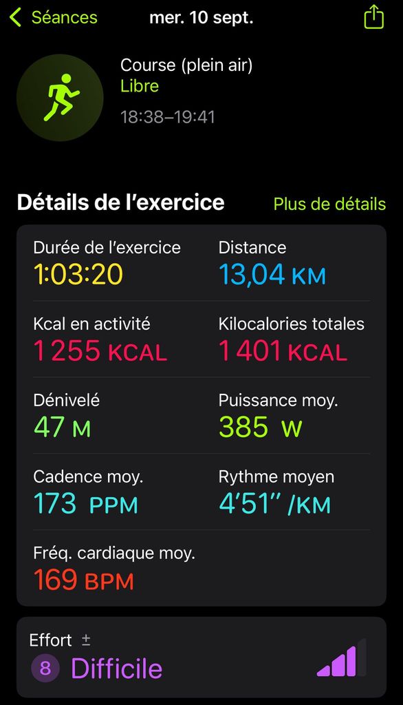 J'ai explosé ma moyenne, je suis encore loin de mon niveau de 2015 mais c'est seulement mon 9ème entrainement de course depuis que j'ai repris le sport