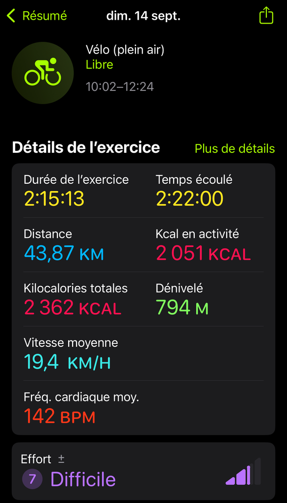 100km quand même, ça faisait depuis genre 7 ans que j'avais pas fais ce genre de distances, et j'ai jamais fais autant de dénivelé sur cette distance. Par contre mon corps est bien fatigué suite à cette sortie de fou