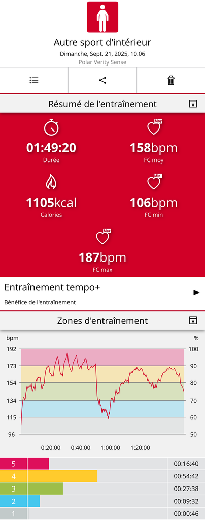 Sur les scéances cardio en salle je montre les captures de Polar Flow, et les infos sont enregistrées par un capteur de FC optique à haute précision Polar Verity Sense