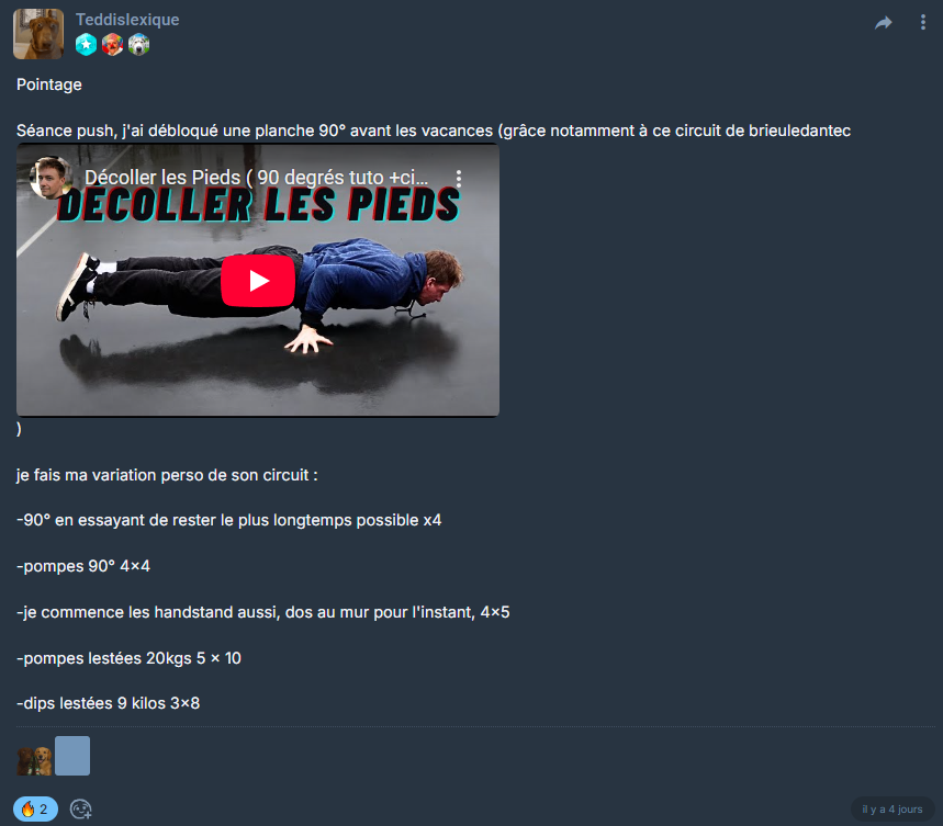 Grade 4 : 🔥 Survivant des courbatures ------------> 1500 XP