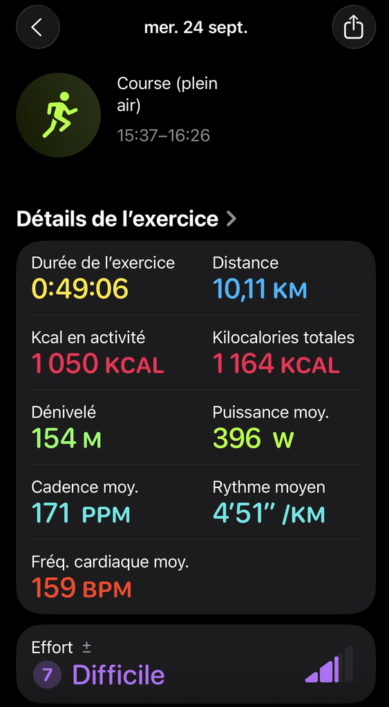 Aussi à noter que ma montre estime ma VO2Max à 46,3 actuellement